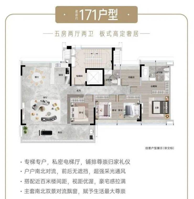 建面约171㎡奢适五房