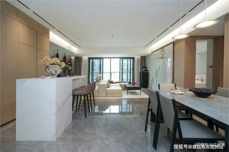 为了达到这一“全面屏”视觉效果,设计团队进行了多轮方案讨论,攻克了不少技术难关。与多数楼盘拼接式的落地玻璃不同,他们最终采用大面积完整玻璃,真正做到全落地,呈现极致的窗墙比,实现了超广角的采光效果和景观视野。