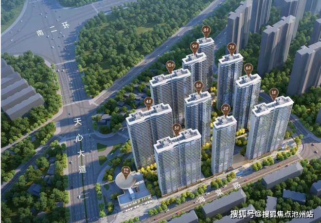 项目规划了10栋高层,全部都是2T2户、私梯入户的纯板楼。效果图如下: