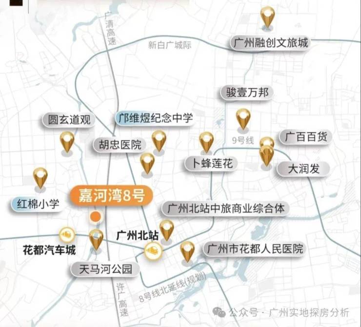 嘉河湾8号位于北站新城板块,归属花都四街的秀全街道,地理位置其实不错,东边就是天马河。