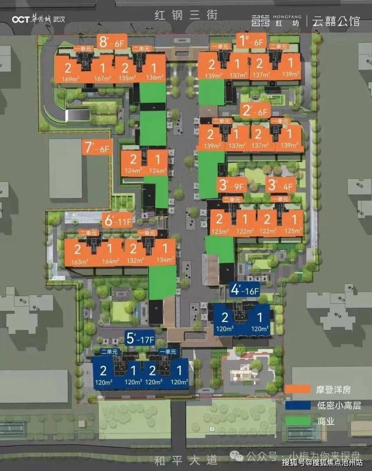 华侨城红坊云囍公馆 城芯低密四代洋房该项目位置位于武汉市青山区红钢一街32号,紧邻和平大道,距离地铁5号线红钢城站约650米,与青山江滩公园直线距离约650米。红坊丨云囍公馆为青山10街坊地块(即P(2024)205号地块),2024年12月26日,商改住之后重新挂牌,仍由武汉华滨置业有限公司(央企华侨城)底价拍得,楼面价约14307元/平。