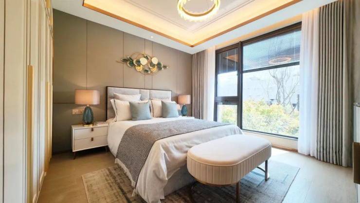 该户型二楼南向卧室有多面采光,这在上海极为少见。超长露台连接起两个卧室,如果家里有两个孩子,各自一个卧室,共通露台供其玩耍,别提有多开心。
