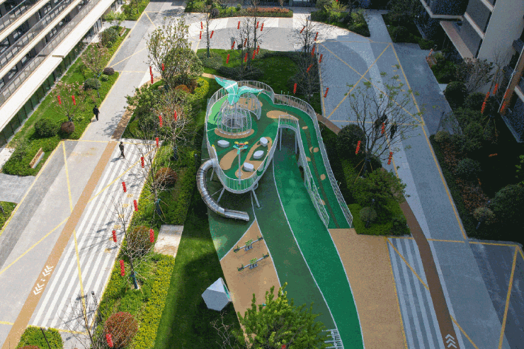 此外,还有室外儿童乐园、一米菜园、网球场、露营草坪等多个组团,共同构成园林的最后一块“拼图”,让生活更加场景化,足不出“园”即可享受体验不同的休闲活动。