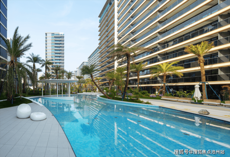 一轴即小区景观主轴,罕见的种植了104棵海枣树,围绕着水系,打造出别具一格的“度假风”景观,一眼望去满是绿意与生机,让生活的每一刻都无比的愉悦与放松。