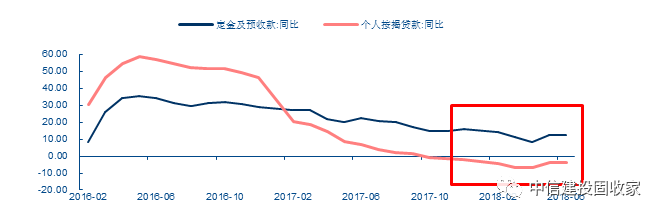 图表2. 定金和预收账款仍然保持较高增速,而按揭贷款重回负增长