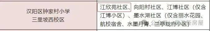 教育:项目属于江欣苑社区,原社区对口白鹤幼儿园(区属机关幼儿园),钟家村小学三里坡西校区(钟小系,全区一梯队),墨水湖中学(翠微系,全区一梯队,普高率65%),都在约100米的路程,周边还有汉阳顶配,武汉市第三寄宿中学(普高率超90%)。