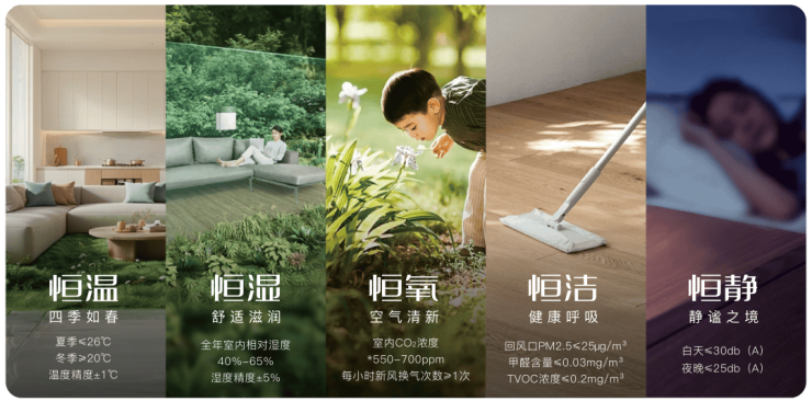 涵盖 “恒温、恒湿、恒氧、恒洁、恒静” 五大核心功能,采用领先的 集成式辐射板技术 ,彻底颠覆传统科技住宅的实现路径。