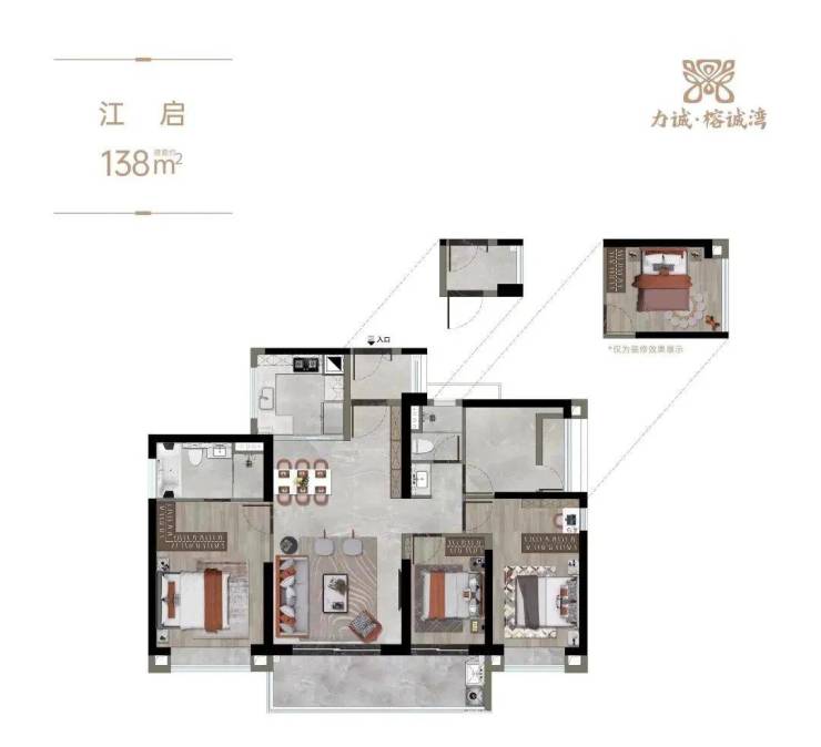 力诚·榕诚湾目前只对外开放建面约97㎡三房的样板间。