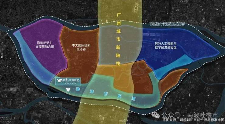 地处广州城市新轴线、珠江后航道和中大国际创新谷三轴交汇处,立足城市未来生态宜居、经济活跃、文化繁荣的滨水区域。