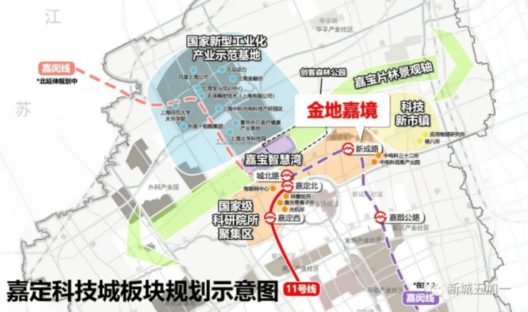 据规划,金地嘉境落址的嘉定新城徐行板块,被定位为科技城自主创新产业示范区,总投资约450亿,未来将建成约1.51平方公里的“科技小镇”。目前中科院应物所、中电科32所、华东计算机研究所等八所国家级科研院集结,同时还正在建造科嘉、盛创等示范园区,为高科技企业提供肥沃土壤。依托强有力的产业发展,以目前的发展势态,科创徐行将成为嘉定新城发展的一匹“大黑马”。