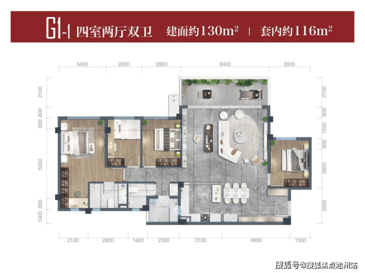 130㎡四居室:户型设计合理,空间利用率高