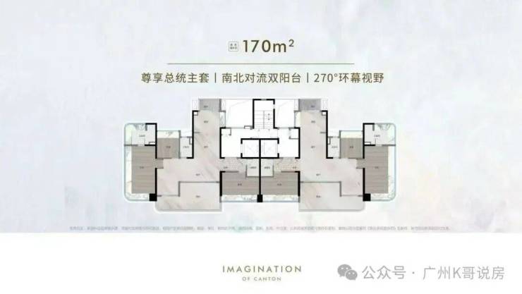 客厅开间约 6 米,预留开放式书房空间,主卧配备 270° 观景飘窗,部分楼层可远眺珠江。