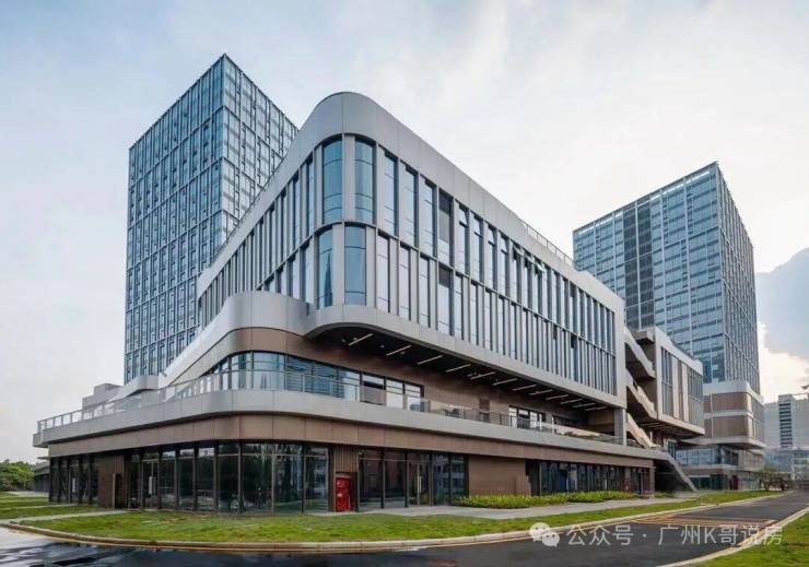 建筑色彩以米白、浅灰为主色调,搭配深灰金属线条,呈现简约大气的现代美学风格,与琶洲 CBD 的商务气质相契合。