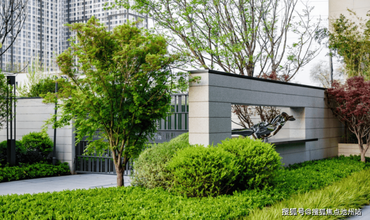 作为谦祥首个TOP改善住区,单元入户专属景墙造型设计,配以景观小品和绿植组团,奢定质感漫溢而出。