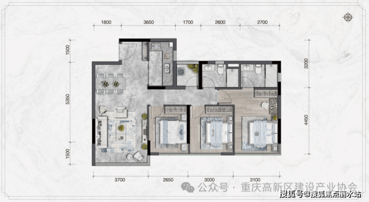 宸院H-1户 型:建筑面积约173m² 四室三厅三卫一厨
