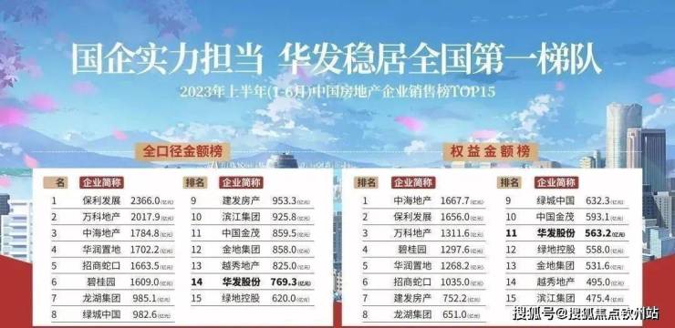 【连续迈入千亿房企阵营 稳居全国第一梯队】华发集团营业收入连续7年增长,在中国500强企业排名逐年递增,7年内跃升301名,疫情3年内跃升147名,一举成为期间全国排名上升最快的中国500强企业;并于2023年上半年中国房地产企业销售榜中荣居第11位,始终稳居全国前列。