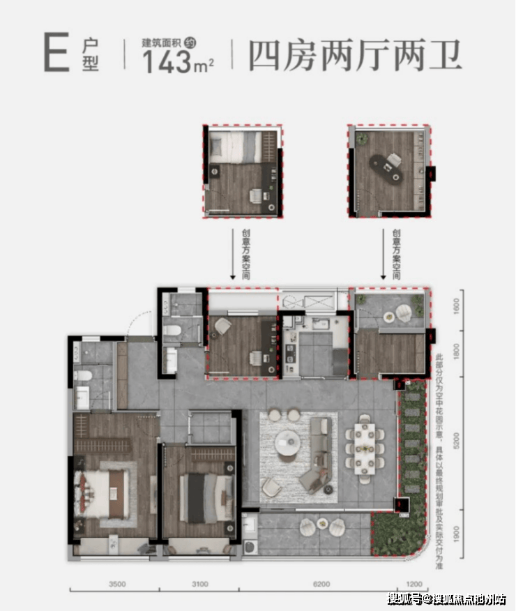 当然,如果预算比较充裕,笔者更推荐项目建面约143㎡户型,其阔绰的空间感,绝对能惊艳温州大部分的改善家庭。