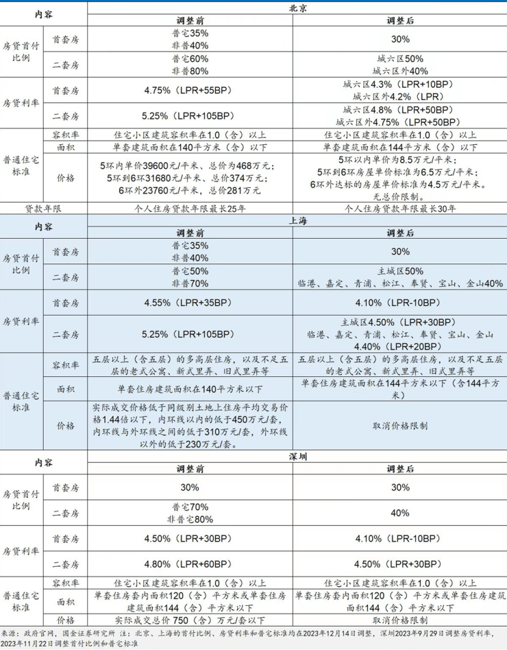 (北京、上海、深圳房贷政策调整 来源:国金地产)
