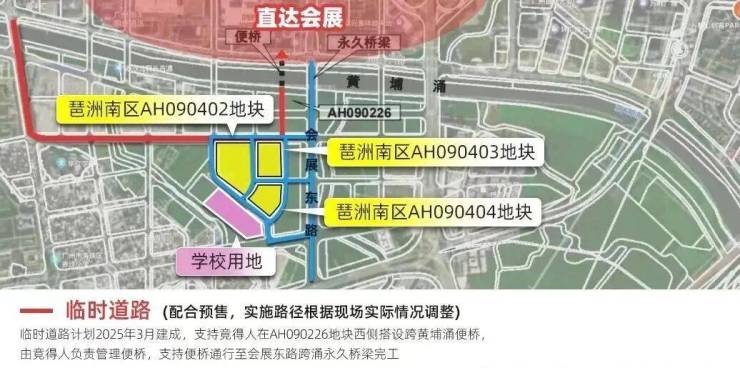 一是临时道路,会搭设黄埔涌便桥,连接琶洲中区,计划2025年约一季度建成;