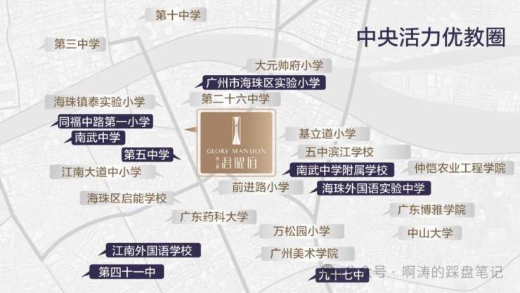 公办省一级海珠区实验小学为邻,对口五中、六中、南武等老牌名校(2024年教育招生公示),周边30余所优质学府林立,划定“中央活力优教圈”,开启海珠菁英教育新时代。(具体招生政策以当年政府教育局公布为准。)
