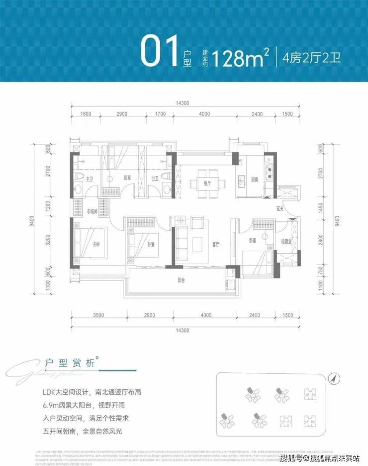 约128㎡4房2卫(1/2/3/4栋01户型)