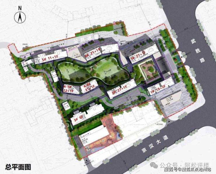 武汉城建承宁府由规划有7栋住宅、一所幼儿园、部分社区商业组成。