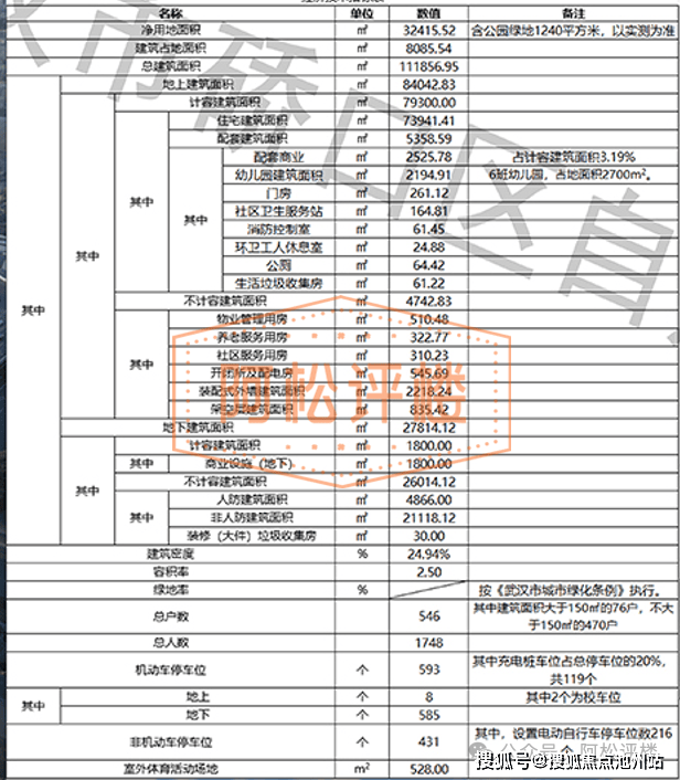 根据规划方案显示,武汉城建承宁府占地面积约3.24万平,总建面约11.2万平,住宅建面约7.4万平,容积率约2.5,共计546套房源(大于建面约150平的76套、不大于建面约150平的470套),户均建面约135.4平,共计593个机动车位,车位配比约1:1.08。