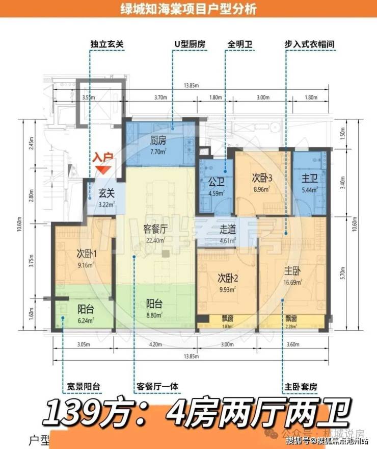 139方户型:四房两厅两卫,独立玄关,南北通透,四开间朝南,双独立阳台(全包)