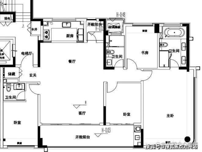 先来看4#楼,这个建面约180m²四房两厅三卫东边户大户型,就非常讲究舒适度。