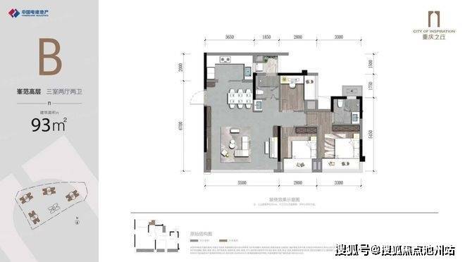中国电建地产·重庆之丘 平层户型·建面/93㎡