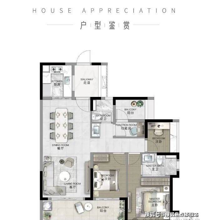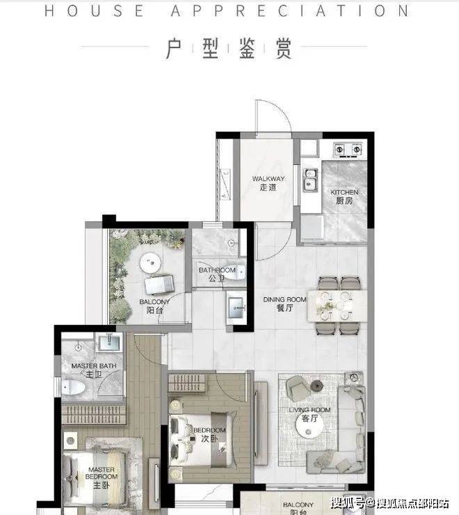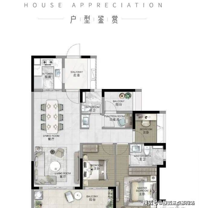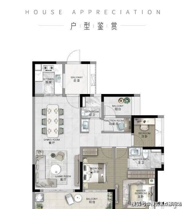 :南向约 6.4m 长阳台,所有房间带飘窗,进一步提升采光与观景效果,为居住者带来惬意生活体验。