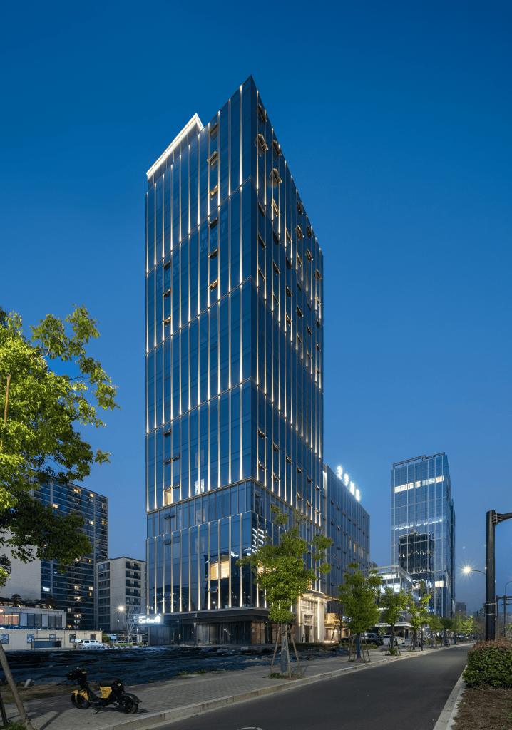 设计理念源自唐纳德·贾德(Donald Judd)的极简堆叠艺术,通过超大窗墙比例,实现了270°全景视野与卓越的空间采光效果,仿佛一幅延展无边的巨幅画卷,将建筑光辉与远方的城市天际线融为一体。