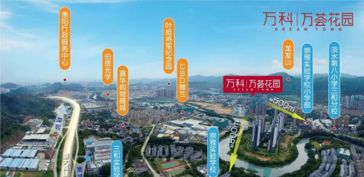 惠州万科·万荟花园(东部万科城)项目位于惠阳三和经纪技术开发区,开发商万科集团,中国房地产第一名,万科·万荟花园占地8.1万平方米,总建筑面积27.4万平方米,总户数1884户,在售户型75-115平米3-4房,装修交付,均价12500元