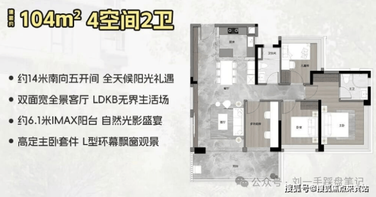 104㎡四房两卫,约6.1米超大阳台,双面宽全景