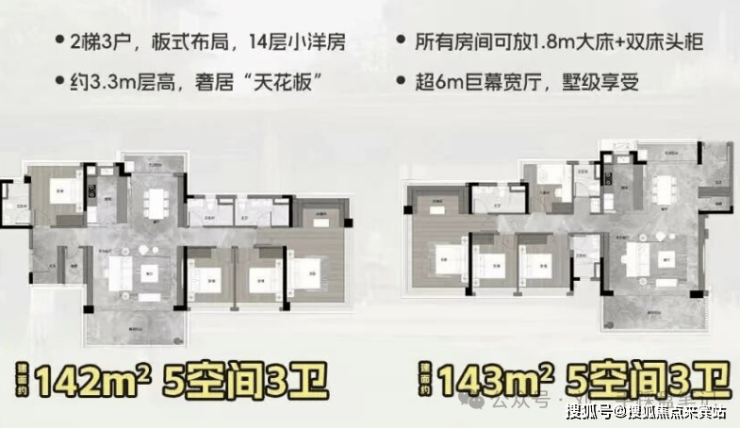 143㎡五房三卫,板式布局,3.3米层高,墅级享受