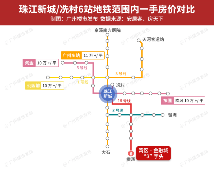 要知道,以珠江新城为原点,能实现6站到珠城的地方大多数房价都要10万+。