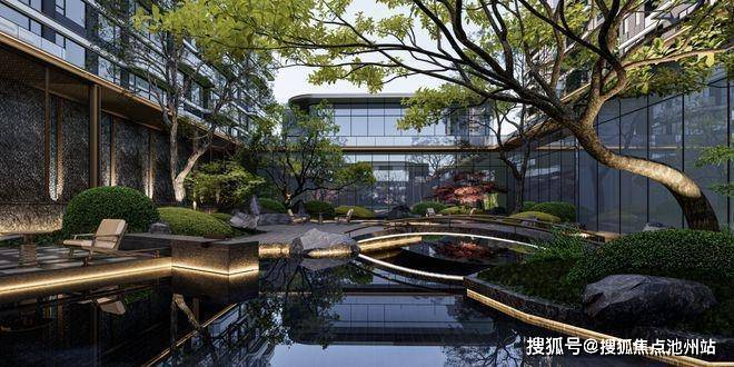 绿城·桂语安澜的花园哲学,是让自然基因渗透至每一处空间肌理。自下而上,下沉式庭院以私密围合演绎入户礼序,山水庭院以水墨笔法勾勒诗境,空中浮岛将开敞阳台与私家花园完美融合,露台则以第二客厅的姿态,承载星空下的家庭剧场。当传统社区因容积率限制而压缩景观纵深时,绿城却以“下沉庭院+地面园境+空中浮岛+屋顶露台”构建多维生态,让花园缦境从平面走向立体,从单一走向复合,形成垂直维度的景观叙事。