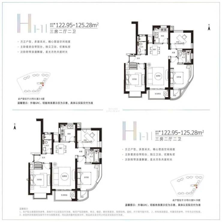 约 122 - 180 平方米的三房两厅两卫,为追求舒适生活的家庭提供了更多空间;