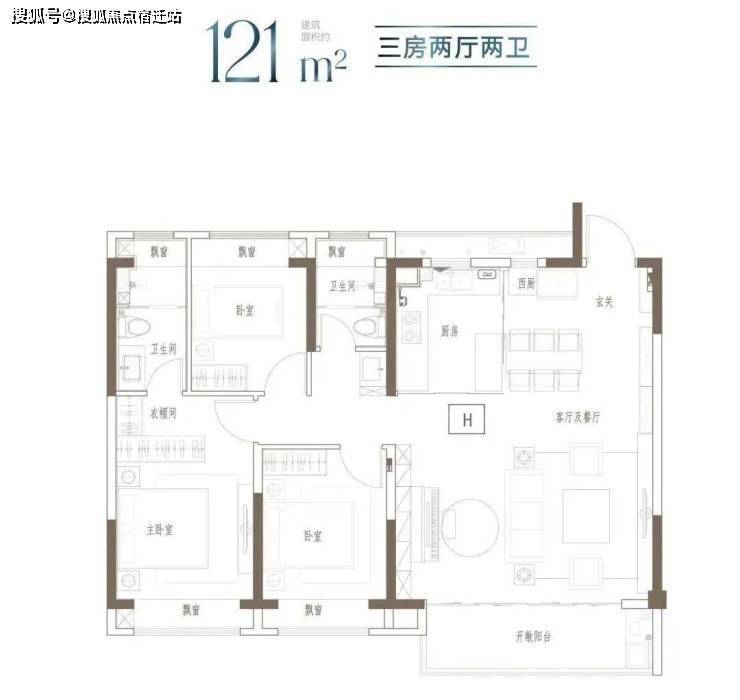 户型特点:3开间朝南,全屋阳光充足;L型厨房转角移门设计,最大化空间视野;四飘窗设计,通透空间享受;动静分区,亲密有度;套房式主卧,容纳私谧生活点滴;