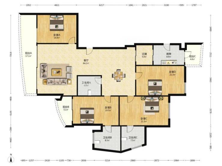 天誉半岛总共容纳了7栋建筑,其中A1栋为商业会所,A2-A3栋、A5-A7栋为住宅,A4栋为商业大平层。住宅面积段为148~440m²平层,少量828~1006m²顶复,主力面积为200m²以上大平层,外立面采用玻璃幕墙和曲面建筑设计,均为精装交付。