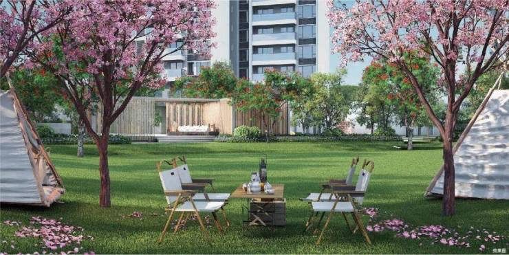项目融资区共规划了 5 栋 29-32 层的住宅,总户数 600 多户,容积率约 3.28,低密的特点让居住舒适度有了一定保障。
