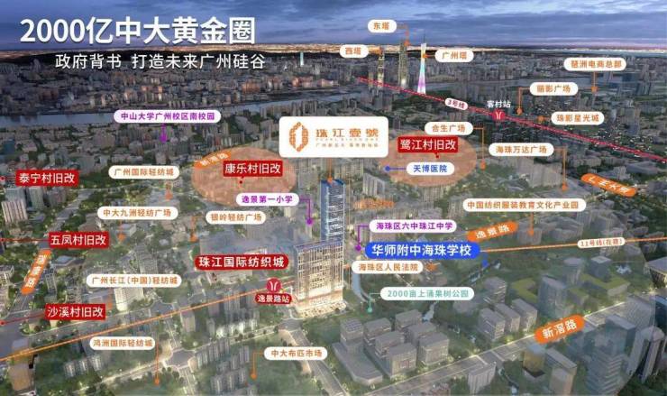 地处 2000 亿中大商圈核芯,与珠江新城、琶洲共筑广州商业黄金三角。周边商业氛围浓厚,万达广场、合生广场以及项目自带的 7 万㎡时尚 MALL 举步即达,汇集全球时尚娱乐休闲、高端餐饮美食、文体商务等全配套生活业态。15 分钟生活圈内,还坐拥体育中心、珠江新城、客村、江南西、琶洲会展等 6 大商圈,商业配套资源庞大且无与伦比。