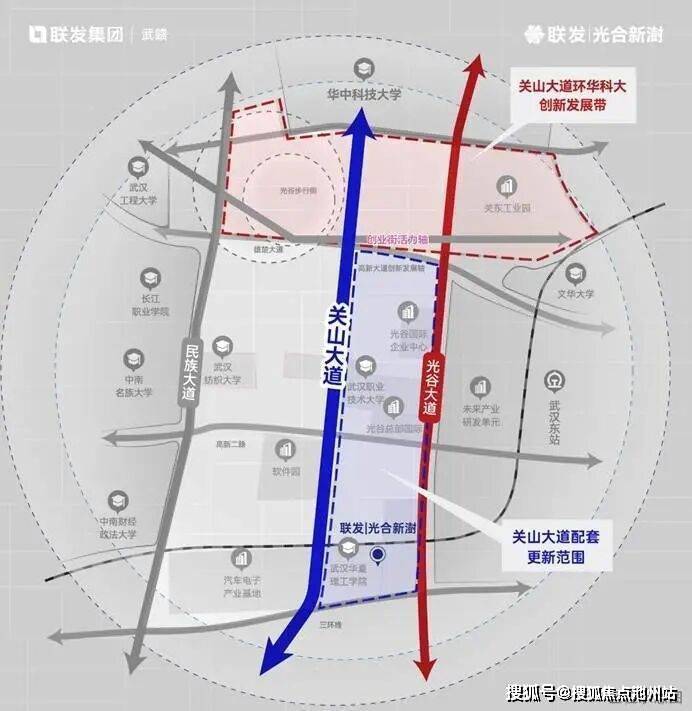 联发·光合新澍落子关山大道核心段,坐拥关山醇熟配套与“环华科大创新发展带”发展红利。关山大道直接与华科大相连,是光谷第一条主干道、首条产值过千亿的城市道路,也是光谷产城融合程度最高的区域,持续吸引着高知年轻家庭涌入。