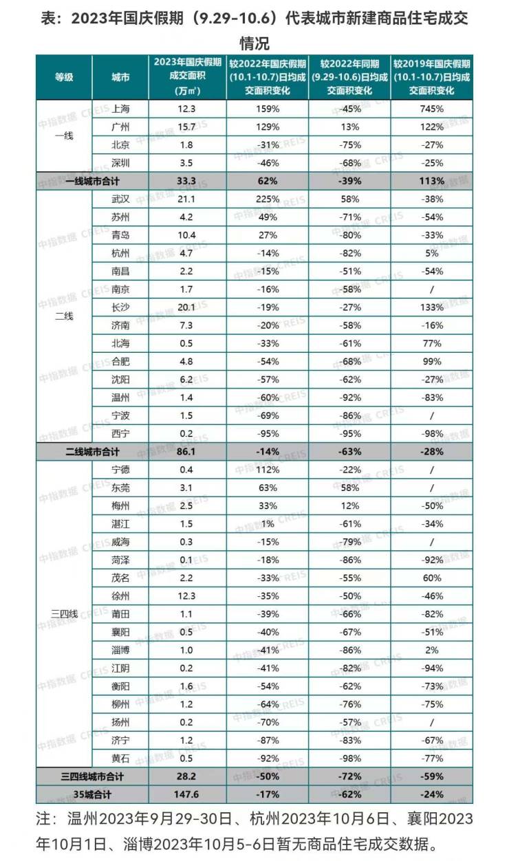 但多城“银十”以平淡开局,中指院数据显示,“双节”期间城市及区域间分化仍较严重,除核心城市或成熟区域楼市热度较高外,整体成交量表现一般,35个代表城市日均成交面积较去年国庆假期(10月1日-7日)及2019年假期下降两成左右。