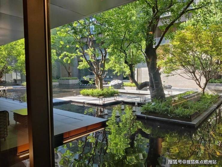 乘坐电梯到达负一层,是下沉式会所。会所内配置了会客厅、书吧、健身房等功能区。室外则连通下沉庭院,以水景为主的立体花园体系,非常赏心悦目。