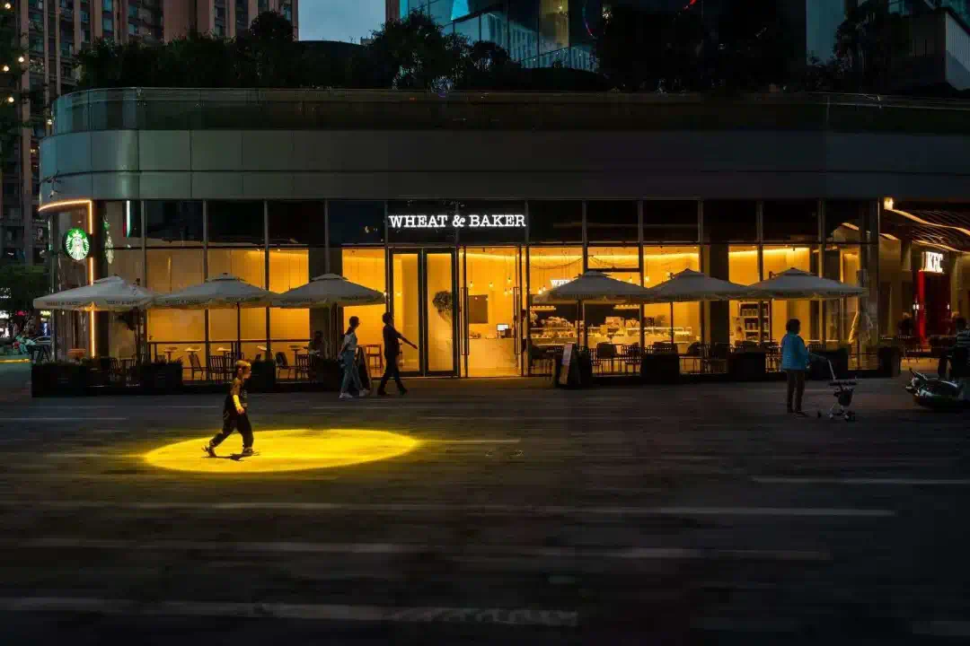 外立面以具有科幻感的“UFO飞碟”造型亮相,采用360°全景影像、炫彩灯光工程打造出沉浸式幻变效果。飞碟顶部的屋顶花园,既能作为活动空间,也是不错的观景台;飞碟内部本身也是一个可用空间,招引了大鸭梨餐饮旗下高端品牌wanwea萬蔚·乐餐厅作为全国首店入驻。