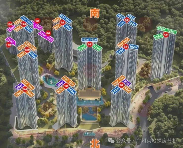 项目一共14栋楼,有4栋7-9层的小高层,有10栋25-31层的塔楼。这10栋中有6栋是2梯5户,3栋是2梯4户,1栋是2梯3户。没回迁房和没人才房。