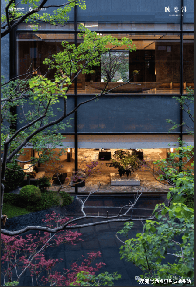 整个会所围绕下沉式庭院展开,外立面均为落地玻璃,室内室外通融,人在室内,人在景中。而推开门进入下沉式庭院中,你会发现,这里有一方静谧。