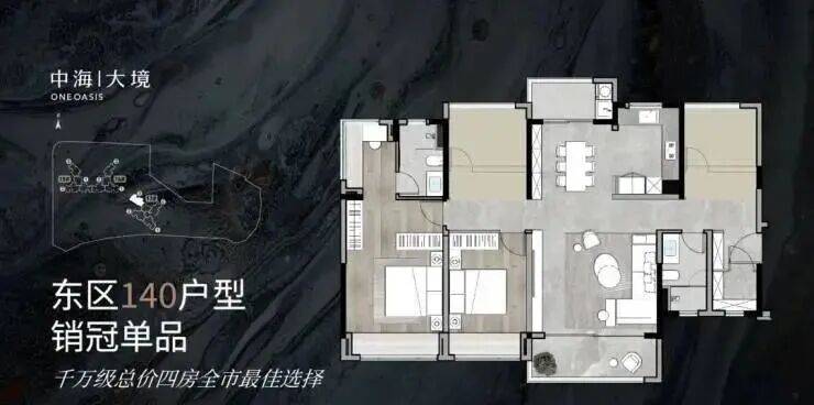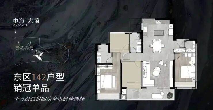 突破百亿后的中海大境,前行的步伐并没有丝毫放缓,马不停蹄推出了东区组团142㎡销冠单品。