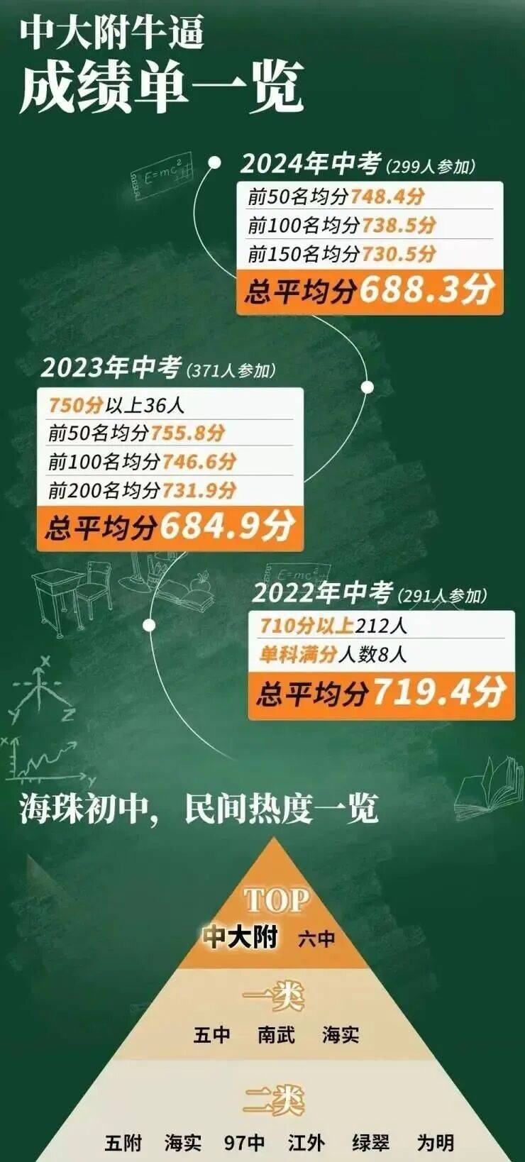 据坊间数据,今年中考,中大附(299人参加中考),前50名均分748.4分。